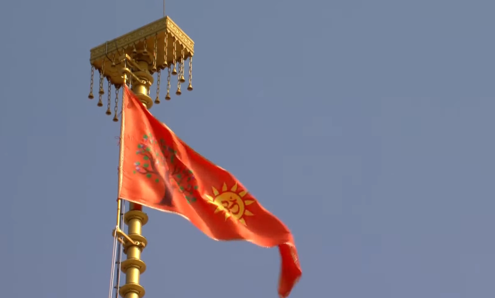 Atop Shri Ram Janmabhoomi Temple Shikhar, which was built in the classic North Indian Nagara architectural style, devotees celebrate as the saffron flag rises.